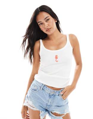 VERO MODA TANK TOP WITH SEAHORSE MOTIF IN WHITE