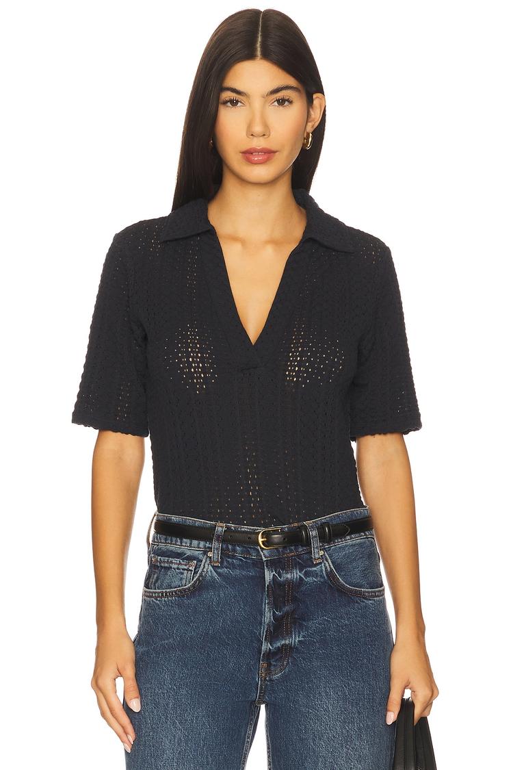 Lightweight cotton and a semi-sheer crochet fabric give this elbow sleeve polo top a breezy, modern edge. Featuring a classic V-neck and regular elbow-length sleeves, it offers a comfortable regular fit that hits at hip length. The subtle eyelet embroidery all over adds texture and interest while maintaining minimalist, casual chic vibes. Ideal for spring, summer, and autumn, this versatile piece suits casual outings, everyday wear, and brunch dates with effortless style.