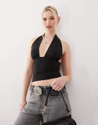 WEEKDAY ALINE DEEP HALTER NECK TOP IN BLACK