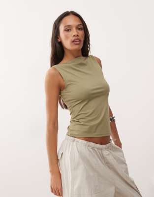 WEEKDAY ANNIE BOAT NECK TANK TOP IN OLIVE GREEN