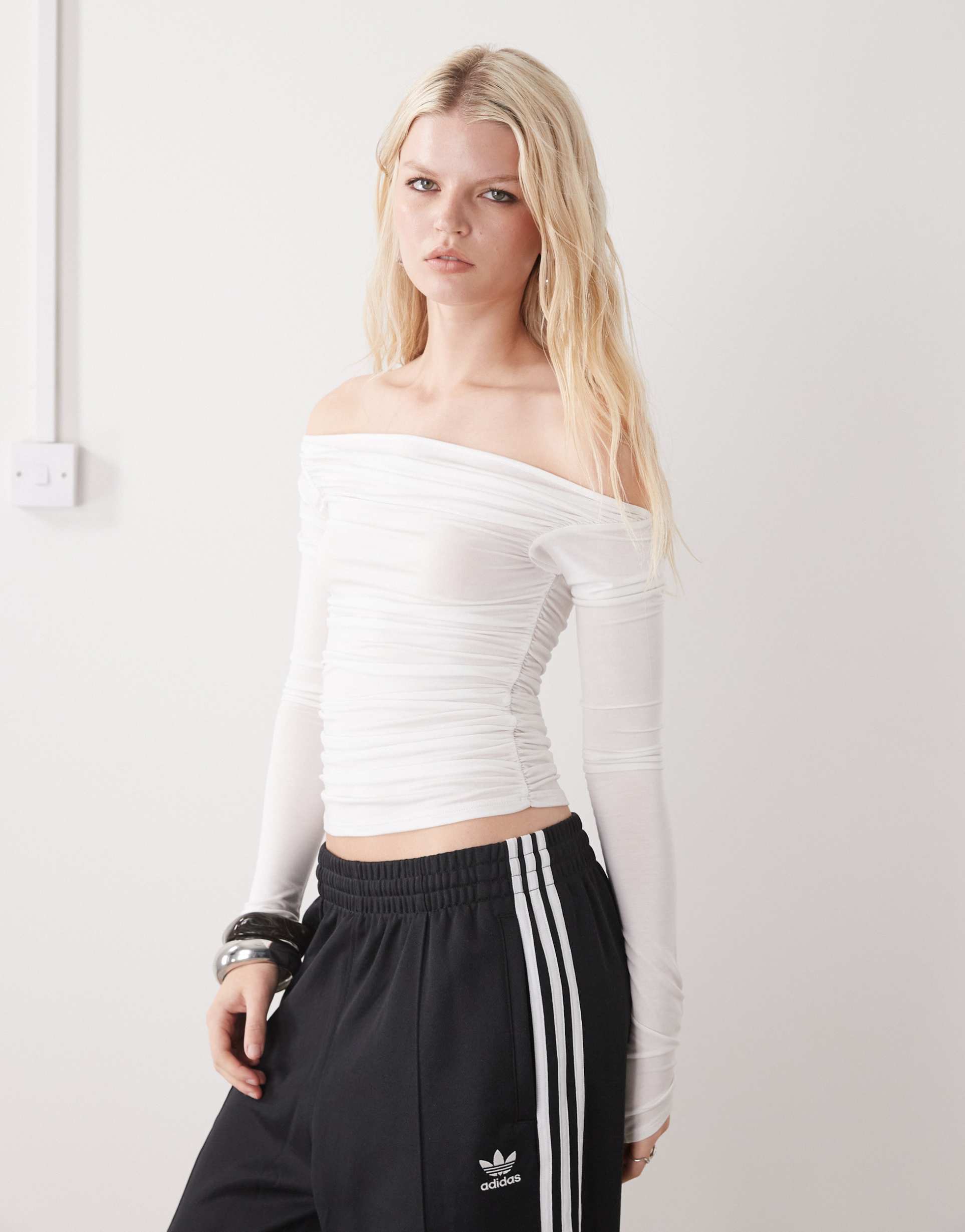 WEEKDAY OFF SHOULDER LONG SLEEVE TOP IN WHITE