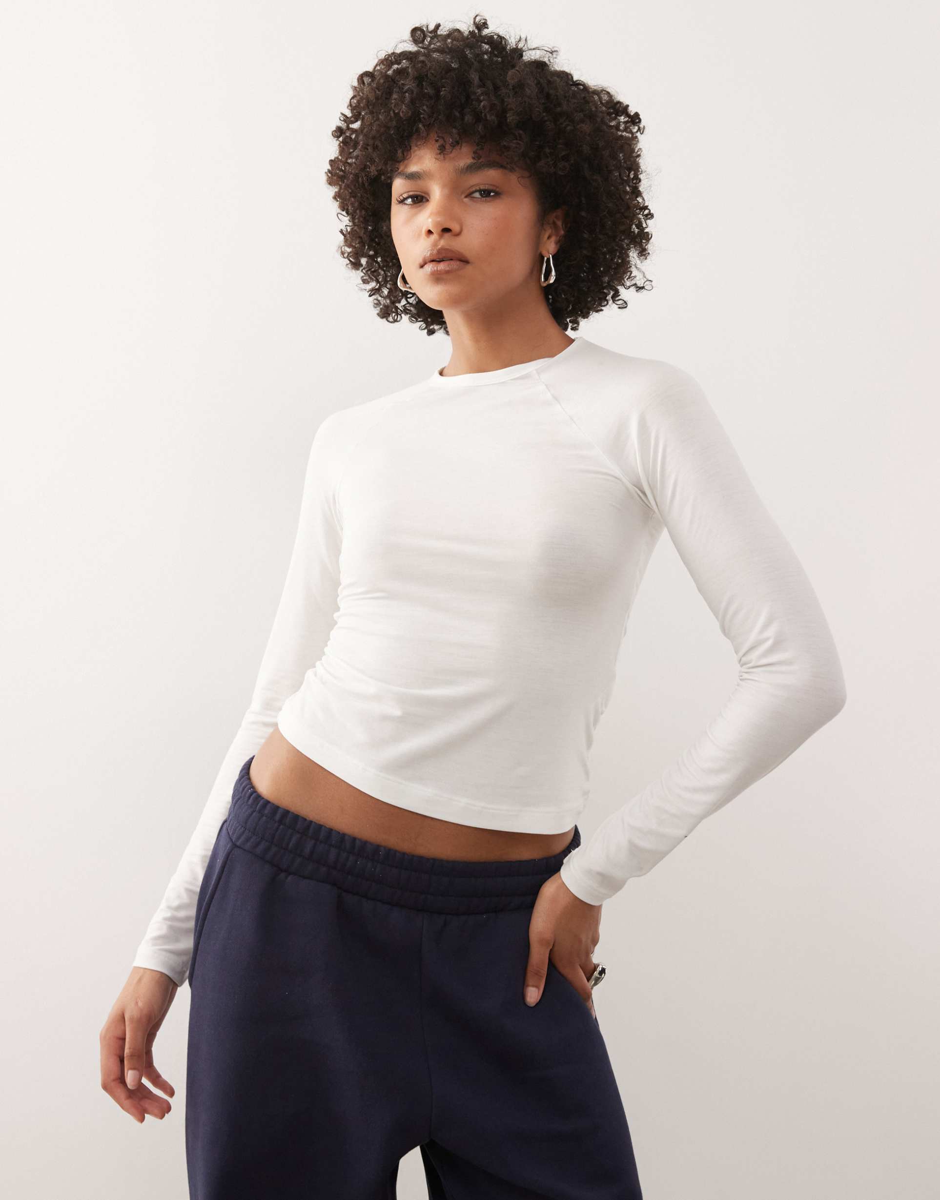 WEEKDAY SUPER SOFT SLIM FIT LONG SLEEVE RAGLAN TOP IN WHITE