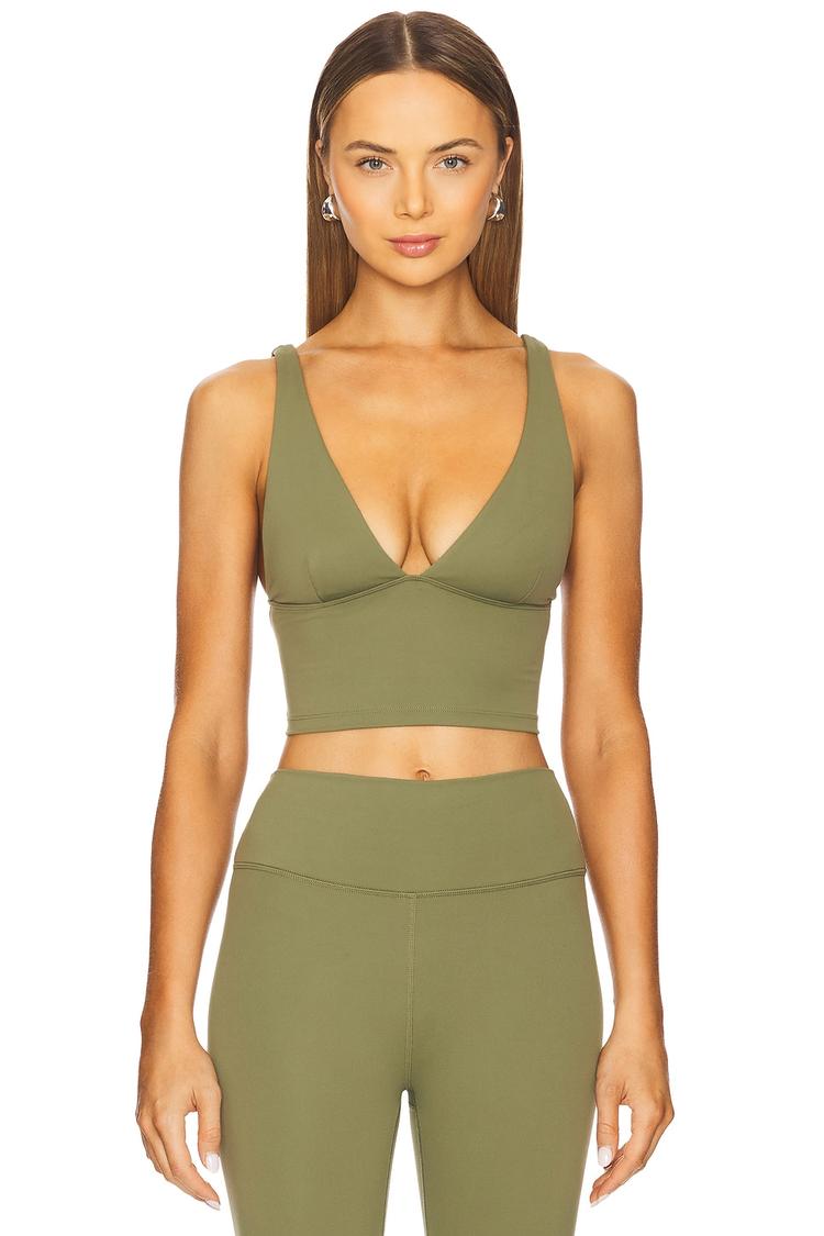 With its matte olive hue and sleek nylon-spandex blend, this fitted cropped tank offers a plunge neckline paired with wide, adjustable straps for tailored comfort. The covered back enhances its minimalist yet sporty chic appeal, making it ideal for casual outings, athleisure looks, or light workouts. Its slip-on design and flattering cropped length allow for effortless layering or pairing with high-waisted bottoms, perfect for spring and summer seasons. This versatile tank balances style and function with a modern silhouette and breathable fabric.