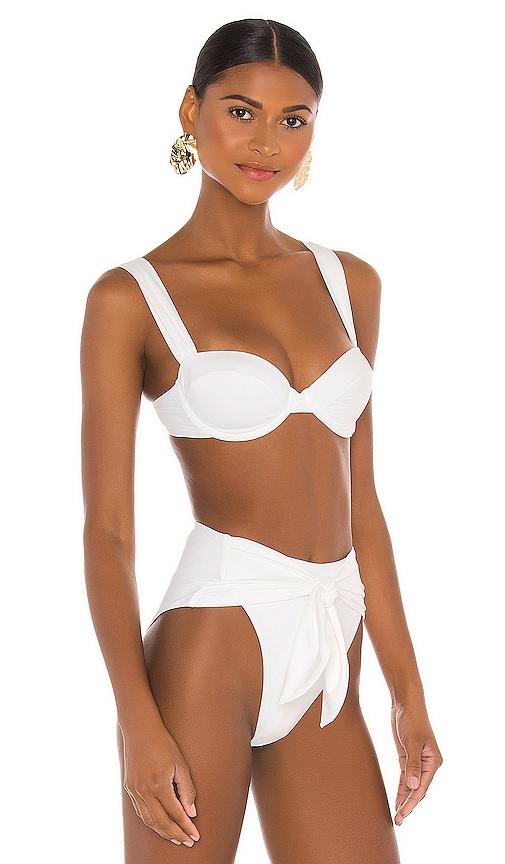 WEWOREWHAT CLAUDIA BIKINI TOP IN WHITE.
