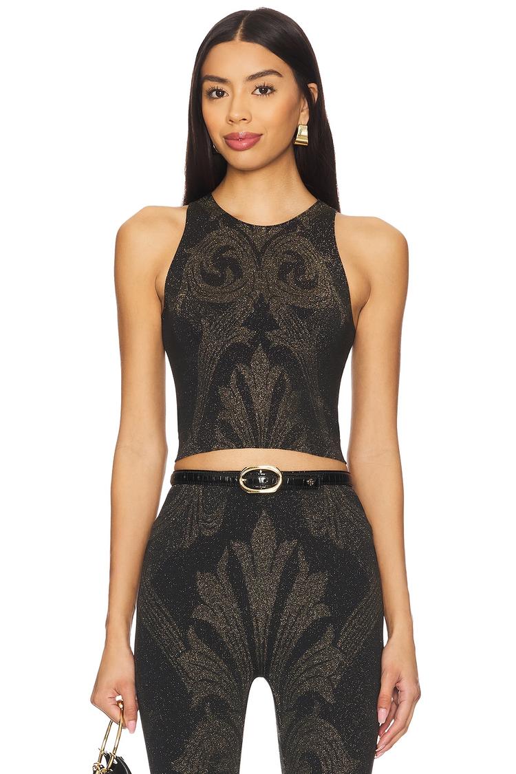 X ETRO METALLIC JACQUARD CROP TOP