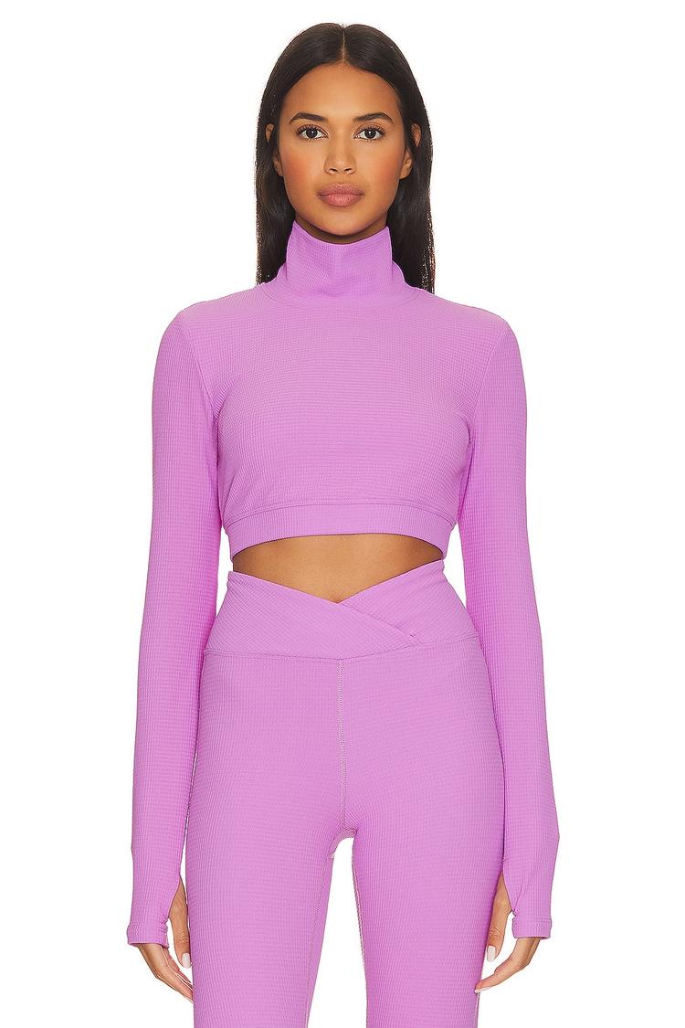 Embrace cool-weather chic in lavender with The Drift Thermal Turtleneck Top. This cropped, long-sleeve knit is crafted in a polyester blend for a soft-touch, stretchable fit that moves with you. A high turtle neck locks in warmth, while discreet thumbhole sleeves add practical coziness. A playful open-back cutout introduces a flirty counterpoint to the sporty silhouette, making it perfect for layering over matching leggings for a cohesive athleisure look. Dress it up with a sleek jacket or keep it casual with the Drift leggings for lounge-to-street versatility. Effortlessly stylish warmth in one sleek piece.