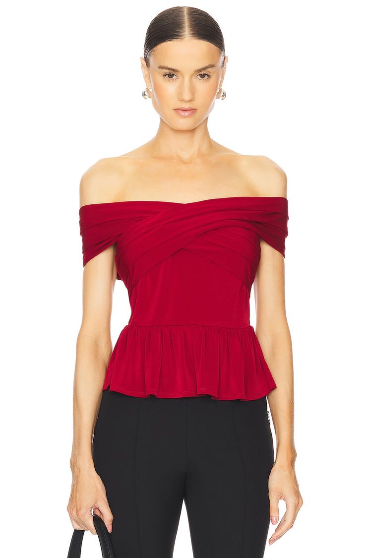 off shoulder red top