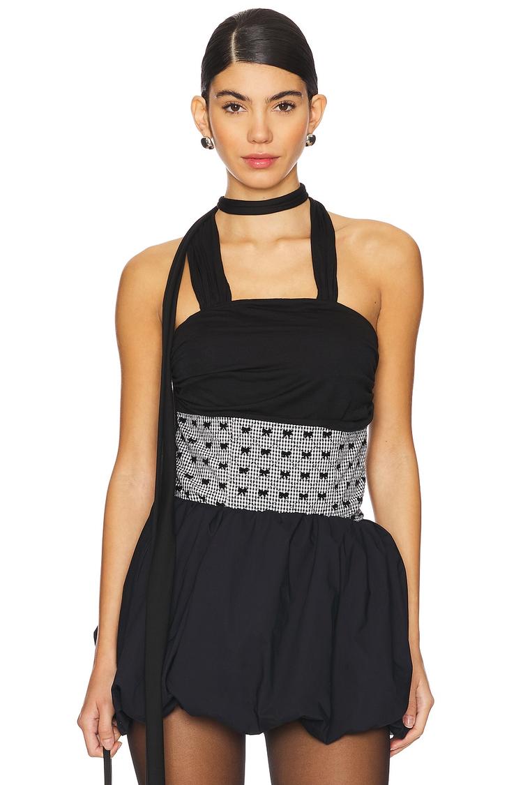 Sleek matte black polyester defines this fitted camisole wrap top, featuring a halter neck and strappy back for a modern, sexy silhouette. Draped fabric adds elegant texture across the front and back, while the pullover styling ensures easy wear. The hip-length cut pairs effortlessly with skirts or pants, making it a versatile choice for casual outings, night outs, or date nights. Crafted from midweight jersey, this chic piece blends comfort with statement-making style for a confident, contemporary look.
