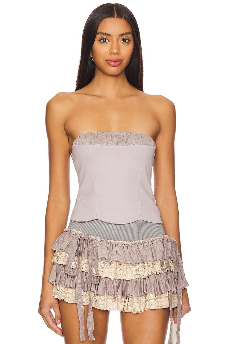Soft matte dusty rose linen and polyester blend forms this fitted tube top with a strapless neckline and sleeveless styling, perfect for warm weather. The waist-length silhouette features a delicate scalloped hem adorned with cream ruffles, adding a charming bohemian touch. Easy slip-on design with a covered back ensures comfort and effortless wear. Ideal for casual outings, beach days, and brunches, this versatile piece blends casual chic with a relaxed summer vibe.