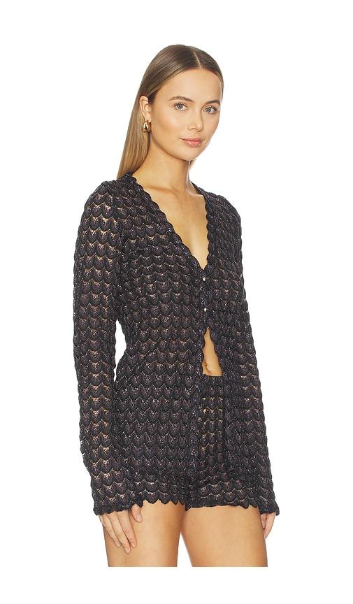 ZULEYHA KURU ELIZA TOP IN BLACK, METALLIC SILVER.