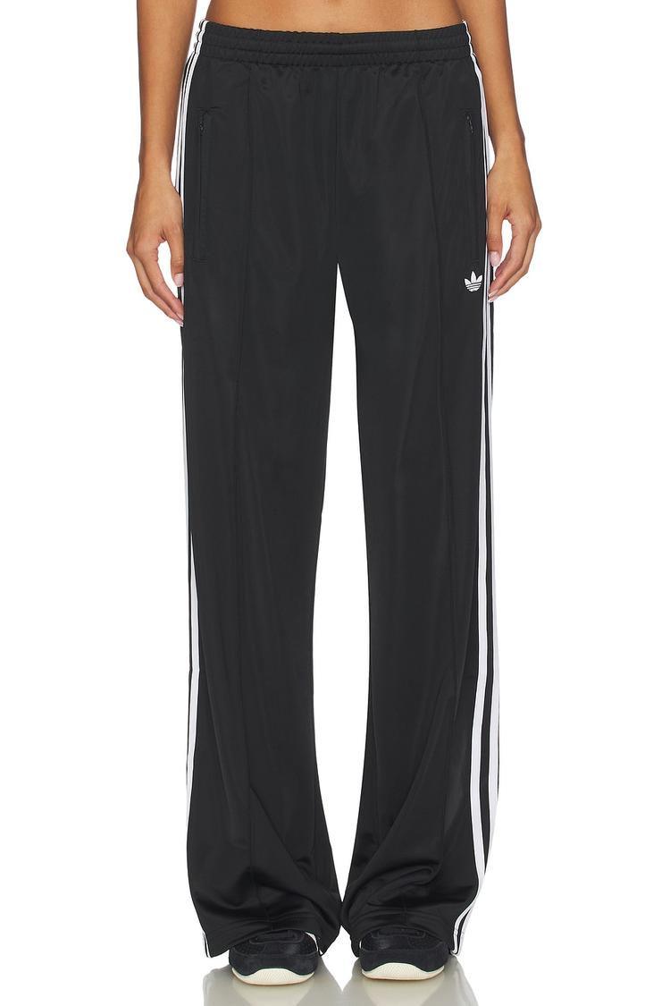 Embrace effortless sporty style with these Adidas Firebird Track Pants, crafted from smooth black polyester for all-day comfort and durability. Featuring a relaxed straight-leg silhouette and a convenient elasticated waistband with drawstring closure, these pants provide a secure yet comfortable fit. The iconic three white stripes run boldly down the side panels, adding a signature athletic flair. Functional side zipper pockets enhance practicality while the full-length hemline offers classic coverage. Perfect for casual outings, workouts, or lounging, these track pants blend modern design with versatile athleisure appeal to keep you moving in style.
