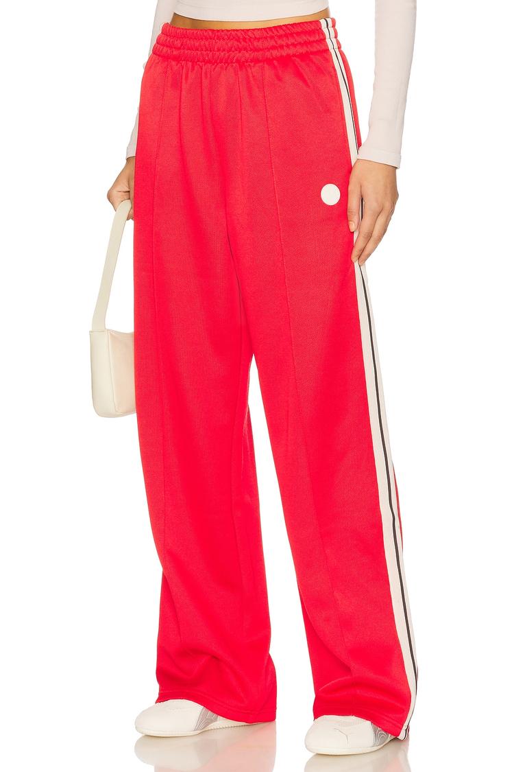 bright red sporty pants for street style