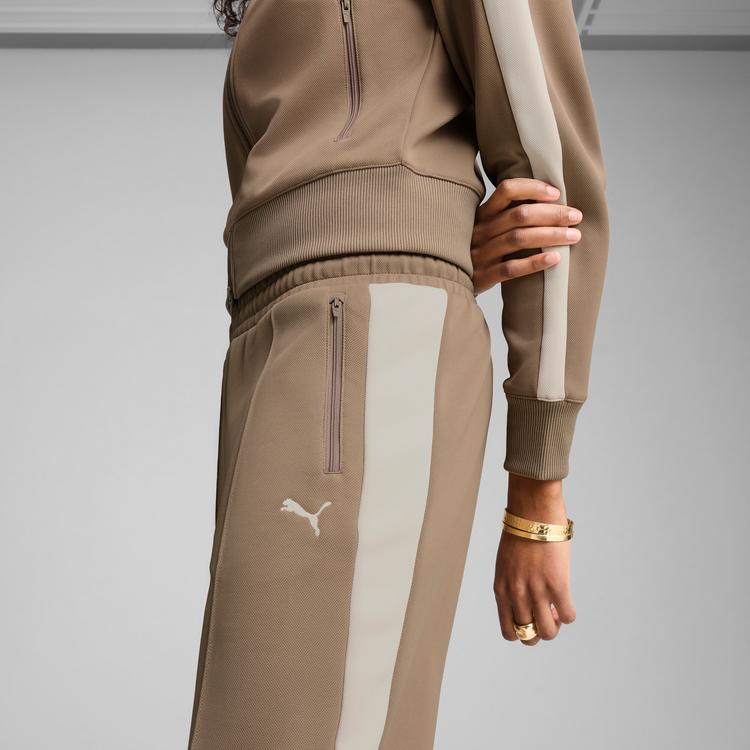 PUMA T7 WOMEN'S STRAIGHT TRACK PANTS IN BROWN, SIZE S