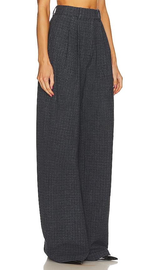L'ACADEMIE THE HIGH WAIST PLEATED PLAID TROUSER IN GREY.