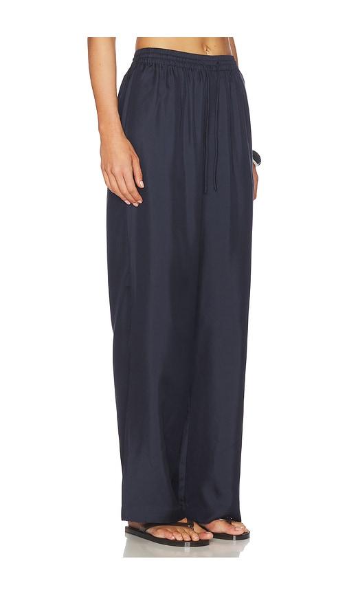 ROHE WIDE LEG SILK TROUSERS IN NAVY.
