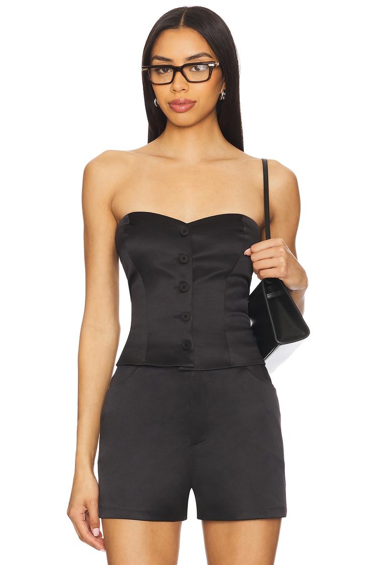 Midweight satin fabric and a fitted corset silhouette combine for a sleek, modern appeal in this strapless gilet. Featuring a straight neckline and front button closure, it offers a waist-length cut that accentuates the figure with minimalist elegance. The nonstick silicone trim ensures secure wear, making it perfect for night out, date night, or casual occasions where chic style is essential. Crafted from a comfortable polyester-elastane-acetate blend, this versatile piece brings refined sophistication to your wardrobe.