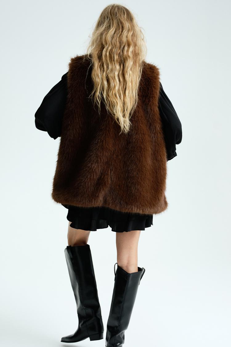 brown faux fur vest