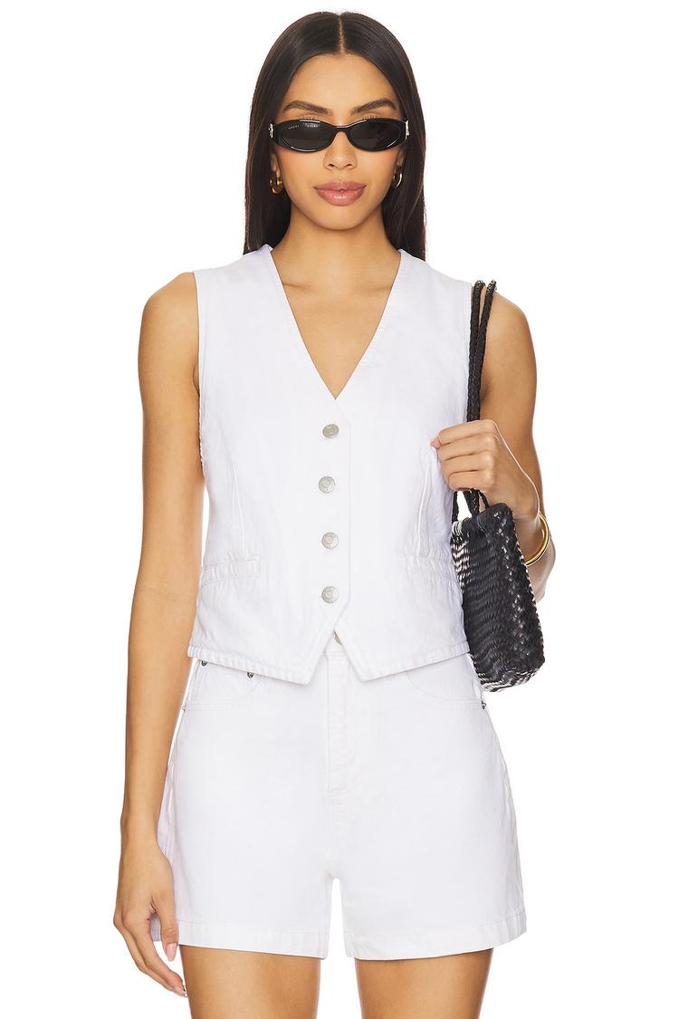 This Vero Vest by Pistola offers a clean, classic silhouette crafted from 100% cotton denim fabric in crisp white. The fitted, waist-length vest features a sleeveless design with a flattering V-neckline and front button closure. Functional front seam pockets add subtle utility without compromising style. Its covered back and minimalist aesthetic make it a versatile layering piece ideal for casual, streetwear, and travel occasions during spring and summer seasons.