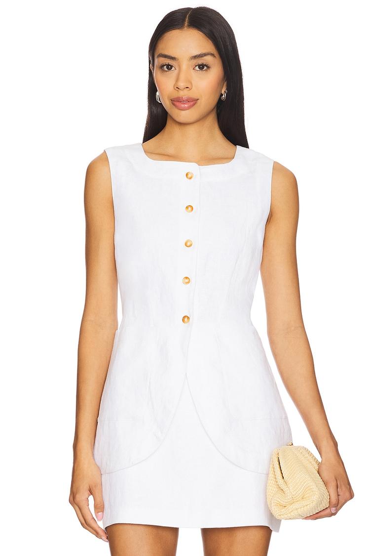 This tailored white linen vest features a sleeveless, hip-length silhouette with a classic round neckline and front button closure. Designed with a back adjustable strap with a gold-tone buckle, it offers a flattering fit and added detail. The vest includes front welt pockets and is lined with soft cotton for comfort. Perfect for casual outings, business casual settings, or weekend brunch, this minimalist and sophisticated piece blends breathable linen fabric with practical design. Ideal for spring through autumn wear, it brings effortless style and functionality to your wardrobe.