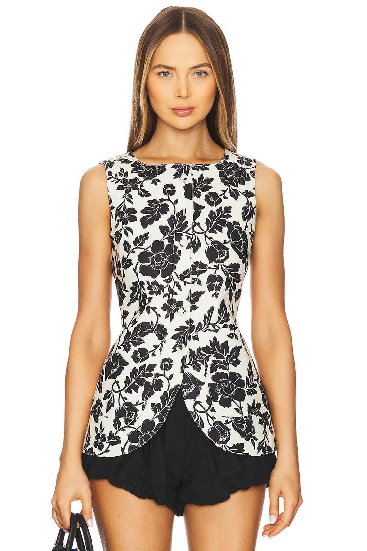 fitted linen vest with floral print