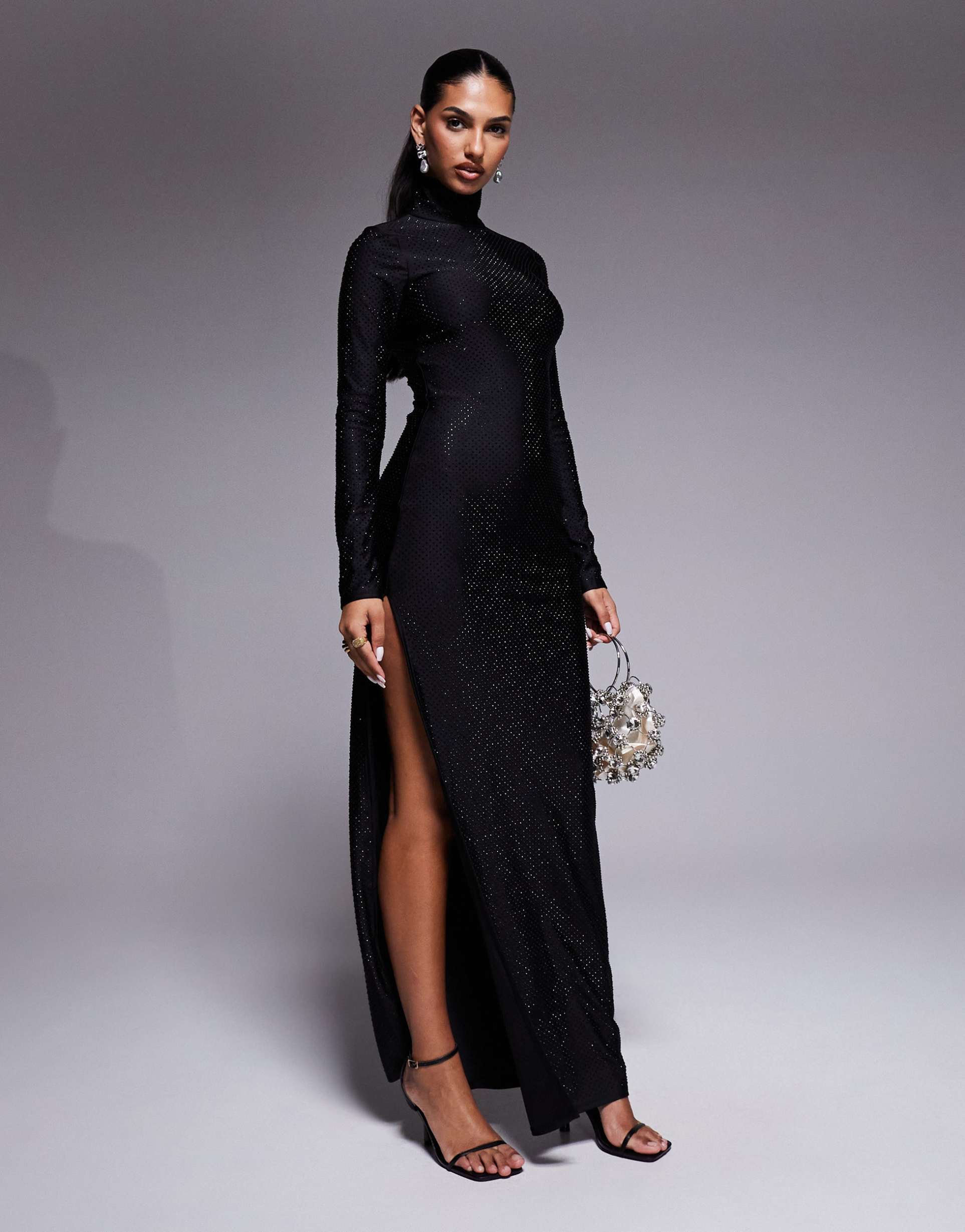 Rhinestone Slit Dress
