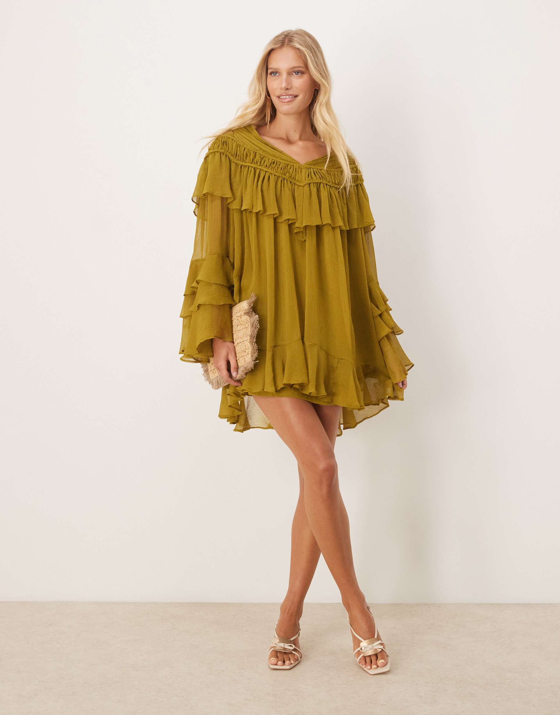 Ruffle Sleeve Chiffon Dress