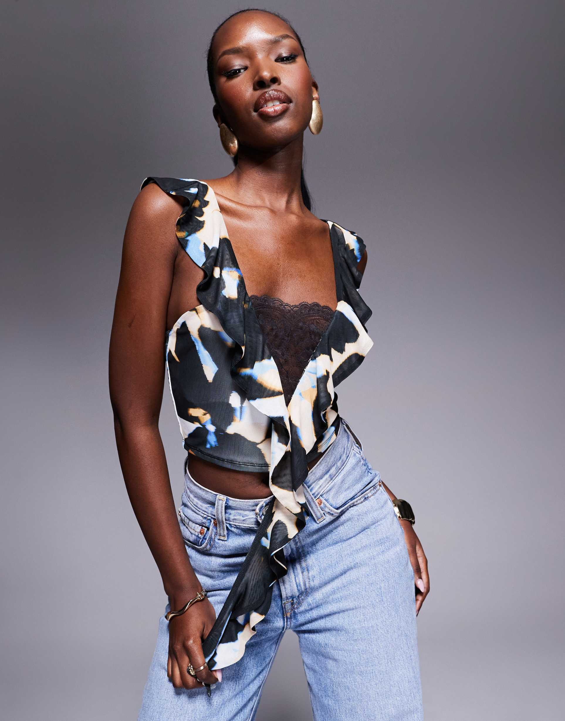 Ruffled Lace Trim Top