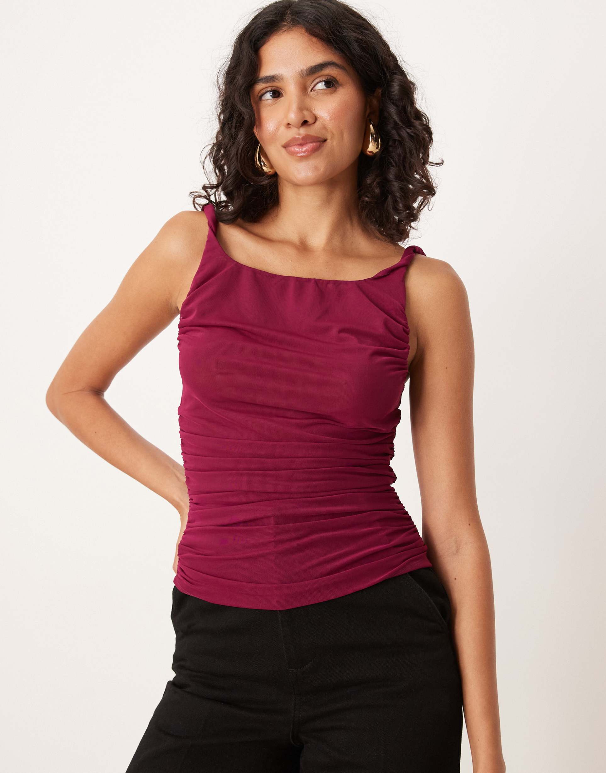 Sheer Ruched Mesh Top