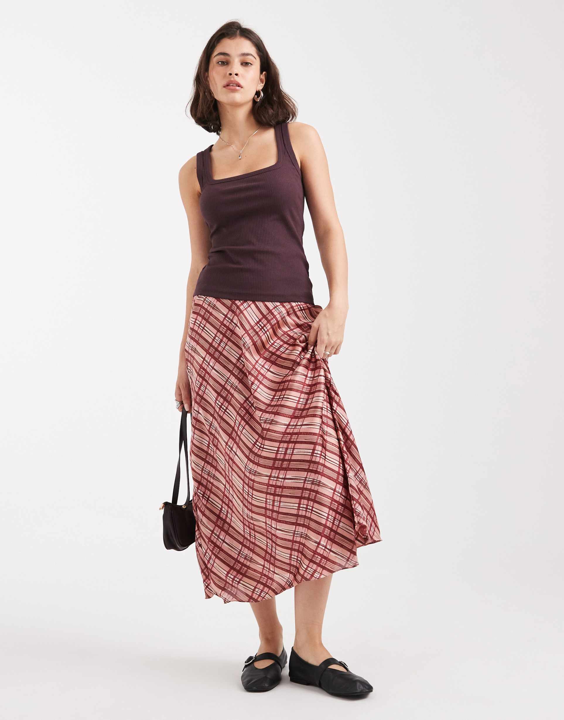 Embrace effortless chic with a floral midi skirt paired with a simple white tee and sneakers for a casual day out. For evening elegance, opt for a sleek satin slip skirt with a delicate camisole and strappy heels. A classic denim skirt is your go-to for a laid-back vibe, perfect with a cozy sweater and boots.