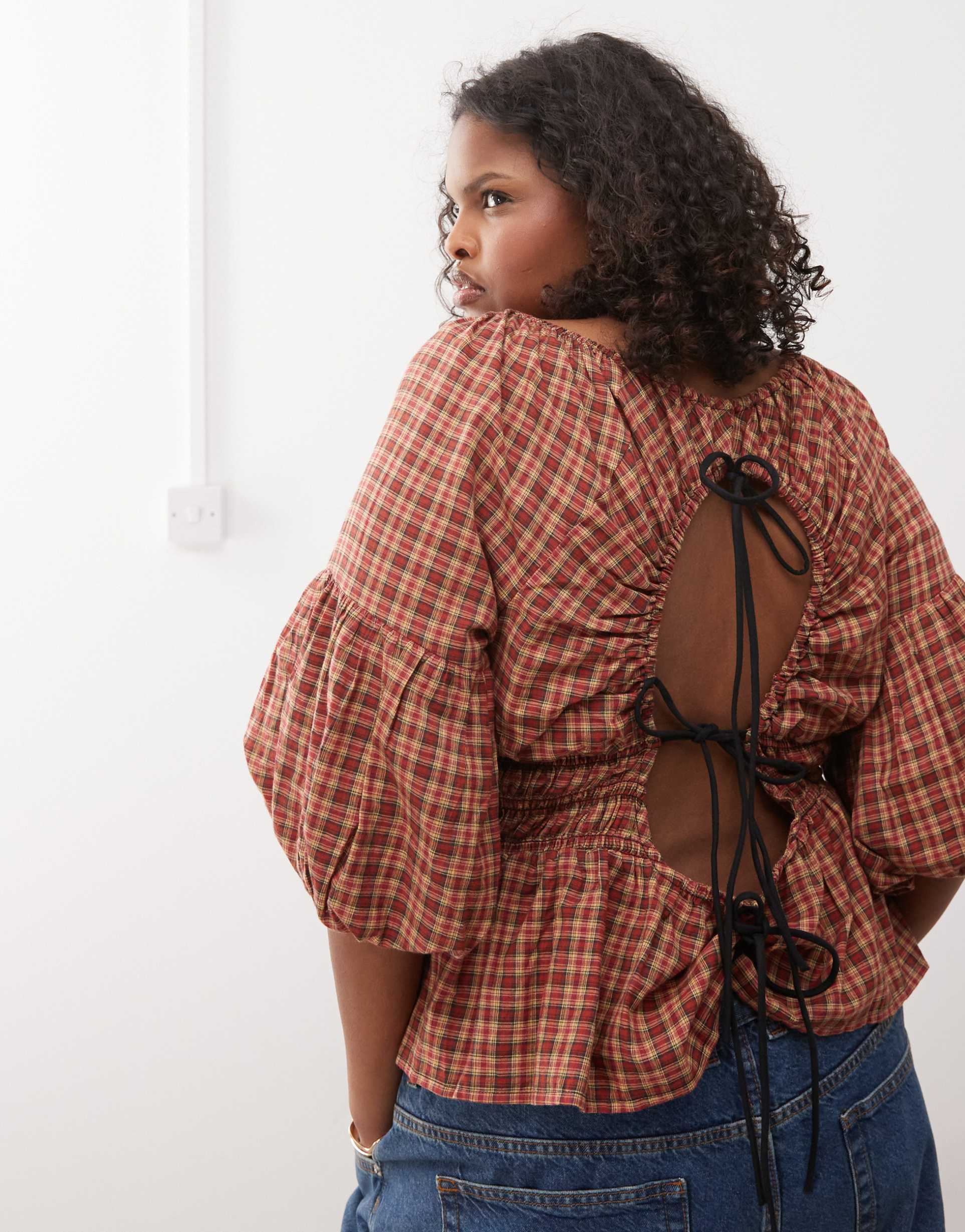 Smocked Plaid Top