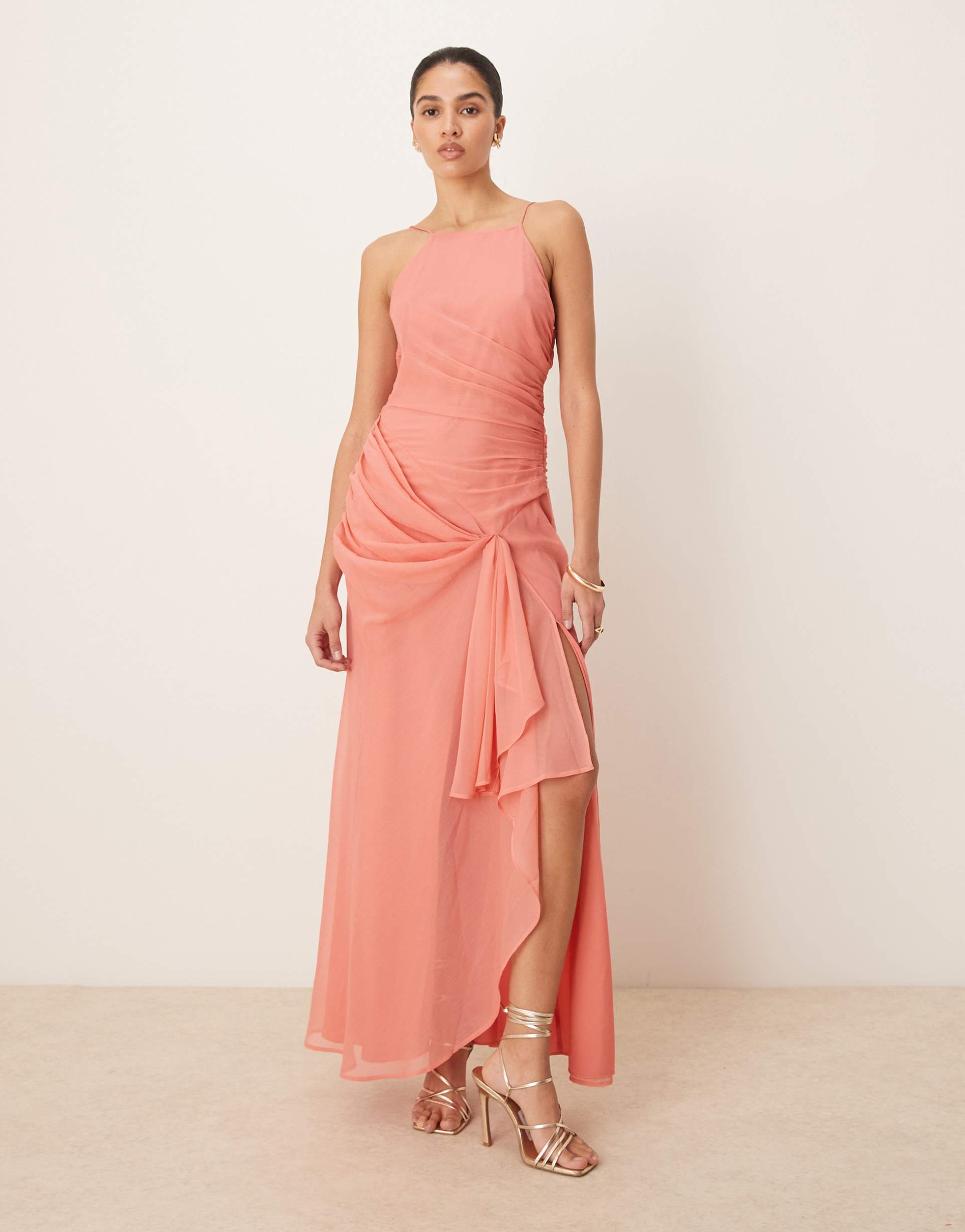 Terracotta Chiffon Maxi Dress