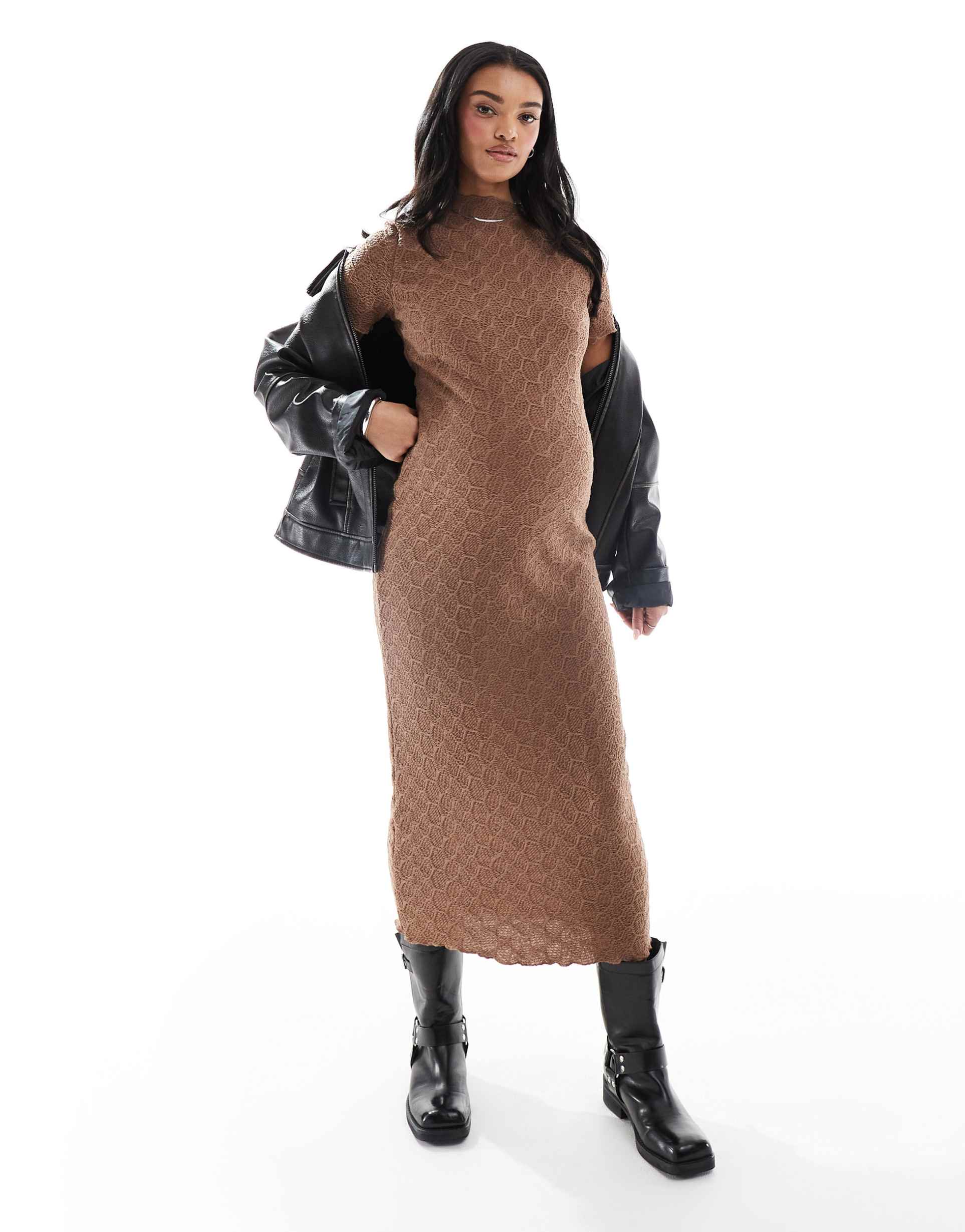 Textured Brown Jersey Dress