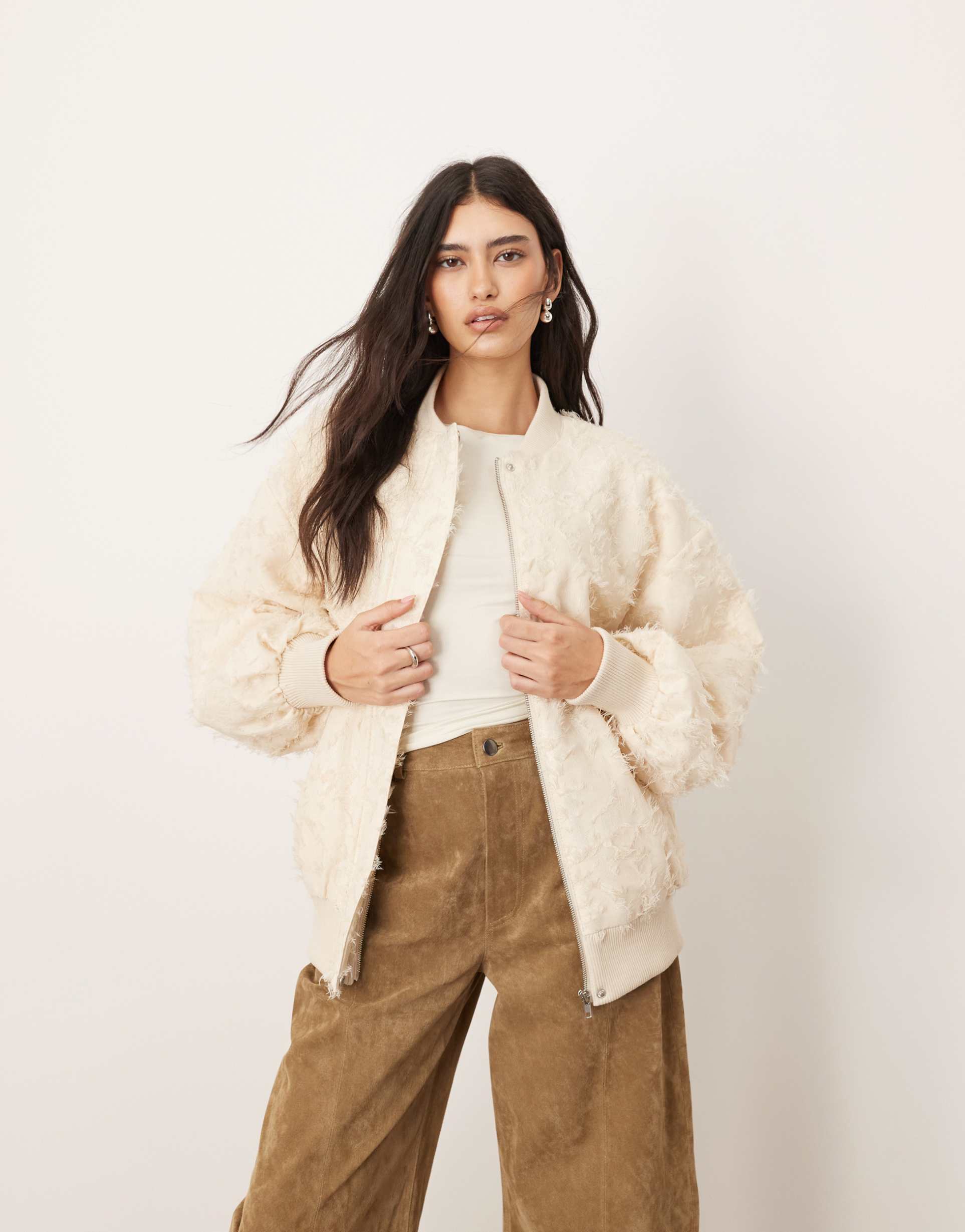 Textured Cream Jacket For Cool Weather