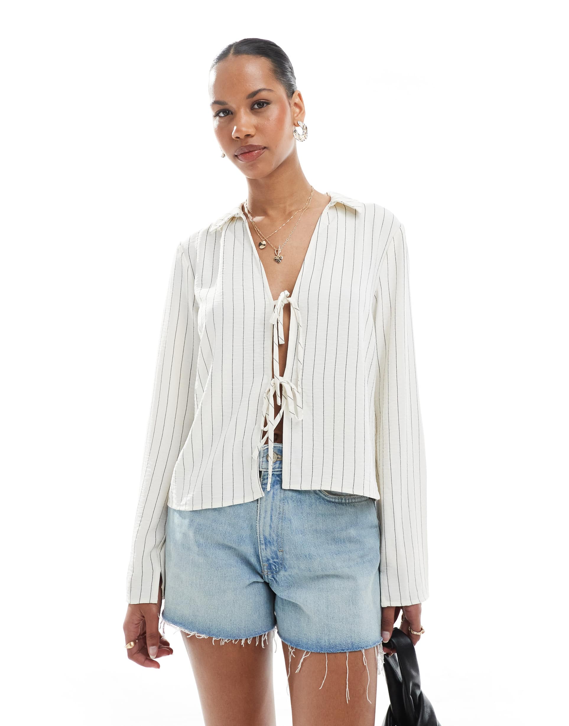 Tie Front Striped Top