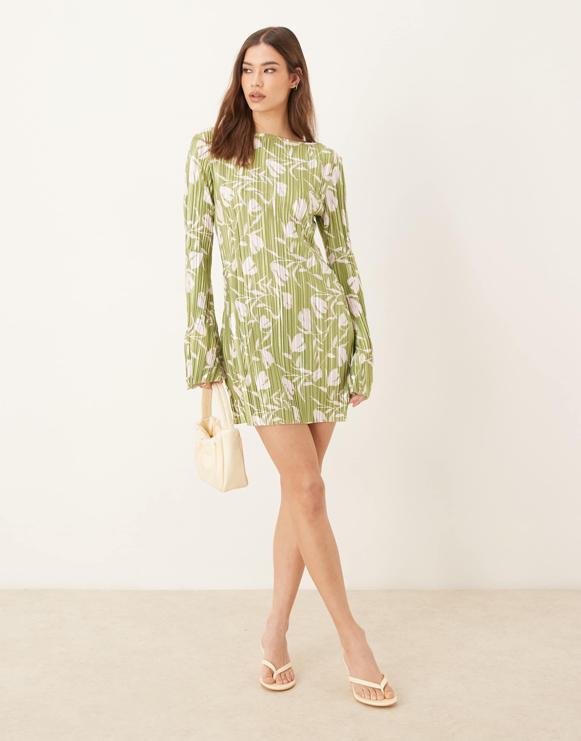 White Green Print Dress