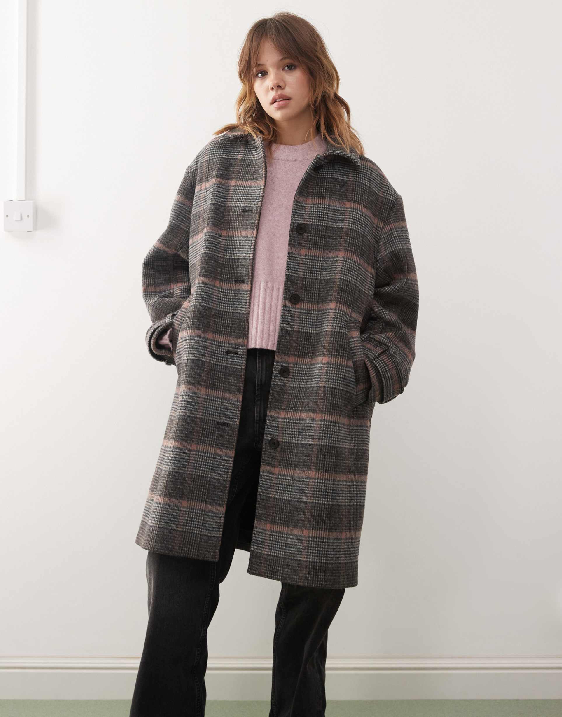 Windowpane Plaid Longline Coat